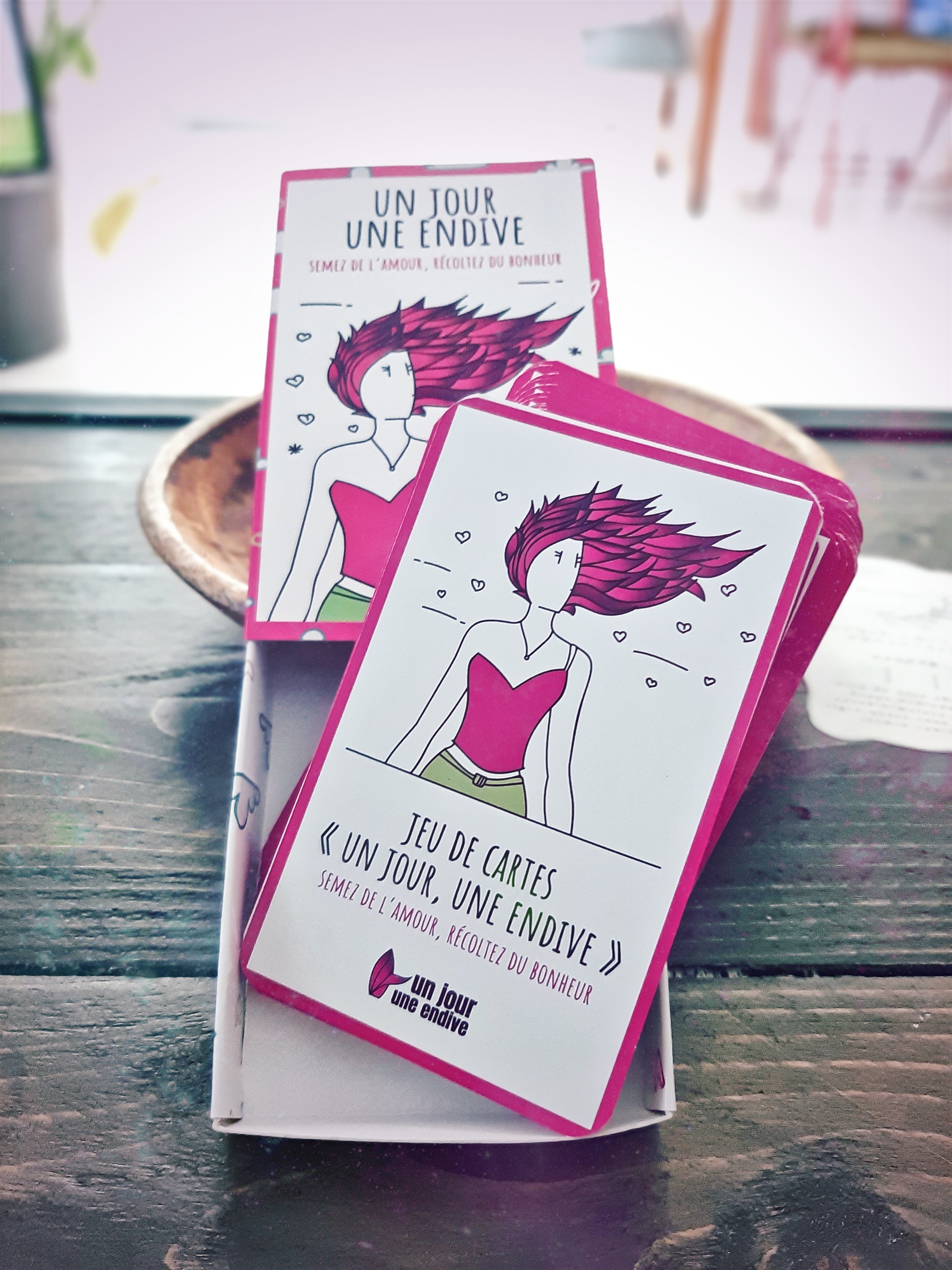 Des cartes qui vous invitent, chaque jour – ou quand vous le sentez – à oser des petits défis qui sèment de l’Amour et permettent au Bonheur de pousser, pas à pas, dans votre vie… et dans celle des autres. Créées par ©Abondance en Soi. Illustrées par ©EED (www.endiveenvie.com – Créations Graphiques Nomādes). 17€ le jeu de 44 cartes + 3€ de frais de port
